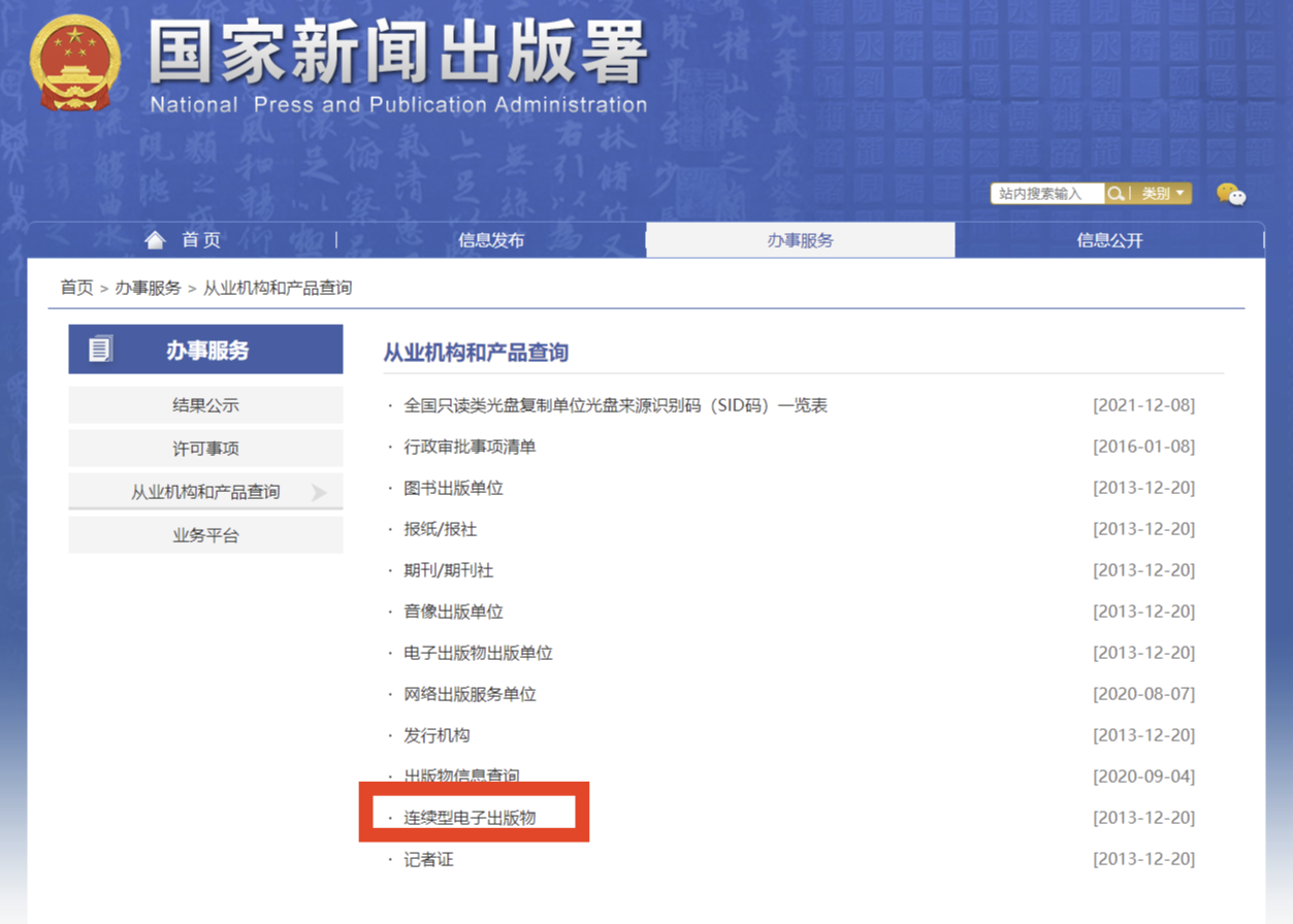 本刊于中华人民共和国国家新闻出版广电总局网上查询途径